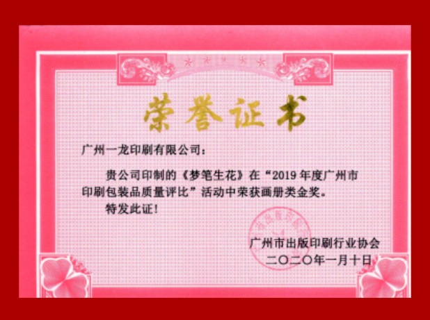 2019 GUANGZHOU PRINTING AND PACKAGING QUALITY GOLD AWARD
