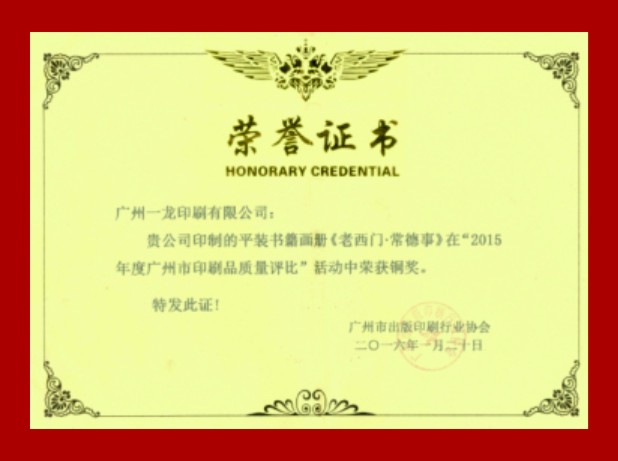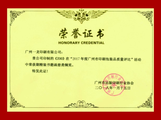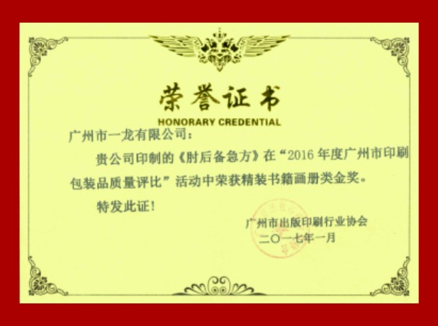 2016年度廣州市印刷包裝品質量評比優(yōu)秀獎