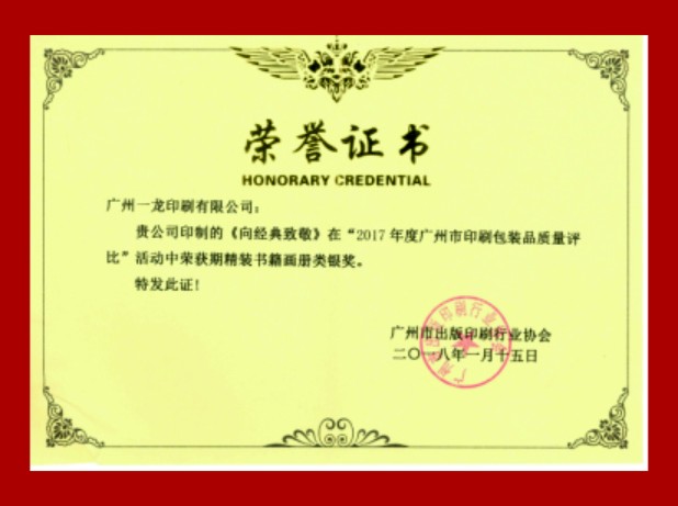 2018年度廣州市印刷包裝品質量評比優(yōu)秀獎