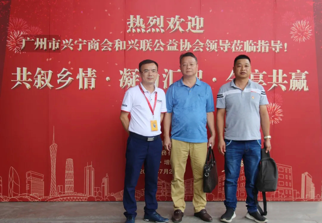 ▲何總與廣州市增城區(qū)興聯(lián)公益協(xié)會何開云會長、副會長兼黨支部書記羅啟飛合影留念