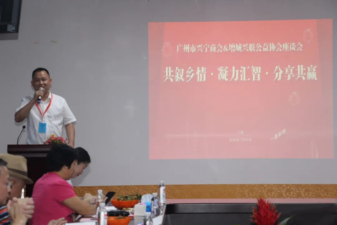 參觀完后,大家一起在三樓大會議室舉行座談會交流,會議由廣州市增城區(qū)興聯(lián)公益協(xié)會副理事長廖遠(yuǎn)浩主持,會議的主題是:共敘鄉(xiāng)情?凝力匯智?分享共贏。