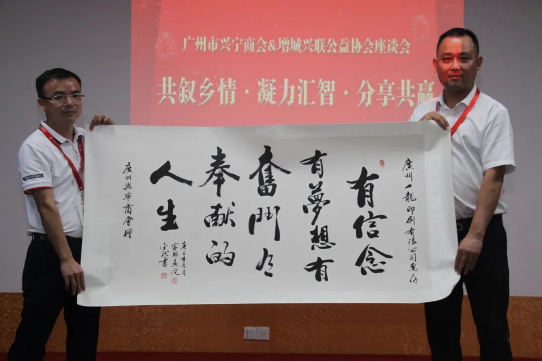 在會議期間,①由何總向來訪的領(lǐng)導(dǎo)、朋友們的到來表示熱烈歡迎,在座談會上何總回顧了自己的創(chuàng)業(yè)歷程、介紹了公司目前的生產(chǎn)經(jīng)營情況,分享了“合法經(jīng)營、規(guī)范管理、樹立品牌、奉獻(xiàn)社會”的創(chuàng)業(yè)心得;②由廣州市興寧商會羅敬東會長和廣州市增城區(qū)興聯(lián)公益協(xié)會何開云會長分別致辭,雙方各自介紹了商會、協(xié)會的情況,并對副會長何雄文在會期間對社會、對公益事業(yè)的大力支持與奉獻(xiàn)以及對創(chuàng)辦廣州一龍印刷有限公司取得的成績表示贊賞!廣州市興寧商會領(lǐng)導(dǎo)一行贈與一龍彩印字畫以資鼓勵支持。